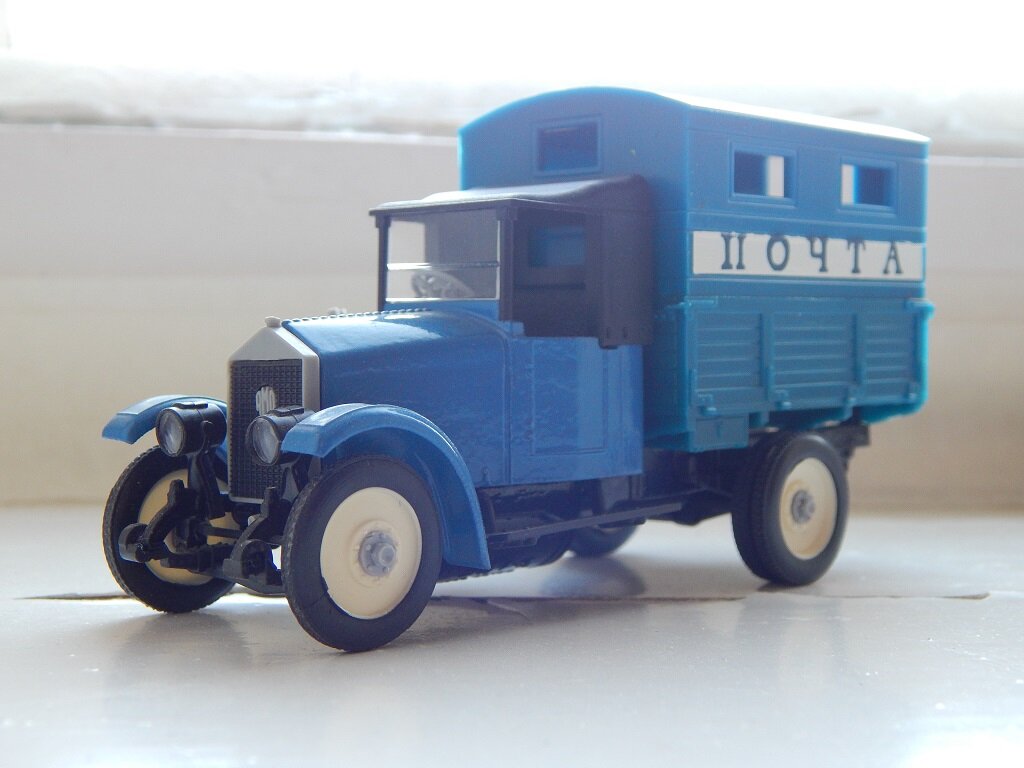 Тогда их в продаже было не так уж и мало. Помимо почтового был выбор между ещё одним фургоном в другой расцветке и цистерной "Керосин". Модель понравилась сходу - она имеет множество мелких элементов, выполненных достаточно подробно. Салон, узлы