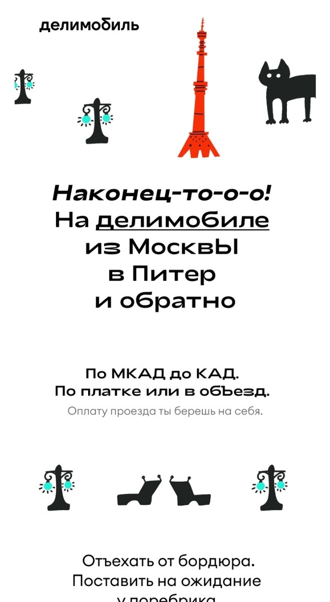 На любом авто (в отличие от Яндекса), в один конец нельзя, начало и конец поездки только в Москве. В суточном тарифе от 2500 руб / сутки теперь включено 300 км. Превышение от 4 руб/км. Таким же образом можно посетить всё, что по пути в Питер - Тверь, Великий Новгород и другие места. Новые пользователи Делимобиля по-прежнему могут получить бонус 400 руб по промокоду REFAPM2, указав его при регистрации. Как вам новость? Поедете в Питер и обратно на ДМ?