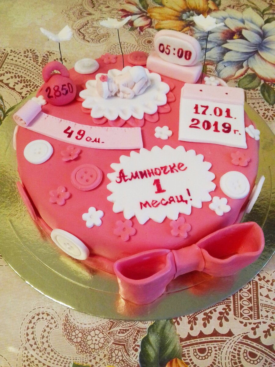 Обо всем договорились, торт должен быть розовенький, в форме единицы и с надписью: "имя дочки и 1 годик". Начинку, крем тоже обсудили: "любые фрукты, только никаких орехов, у меня на них аллергия".