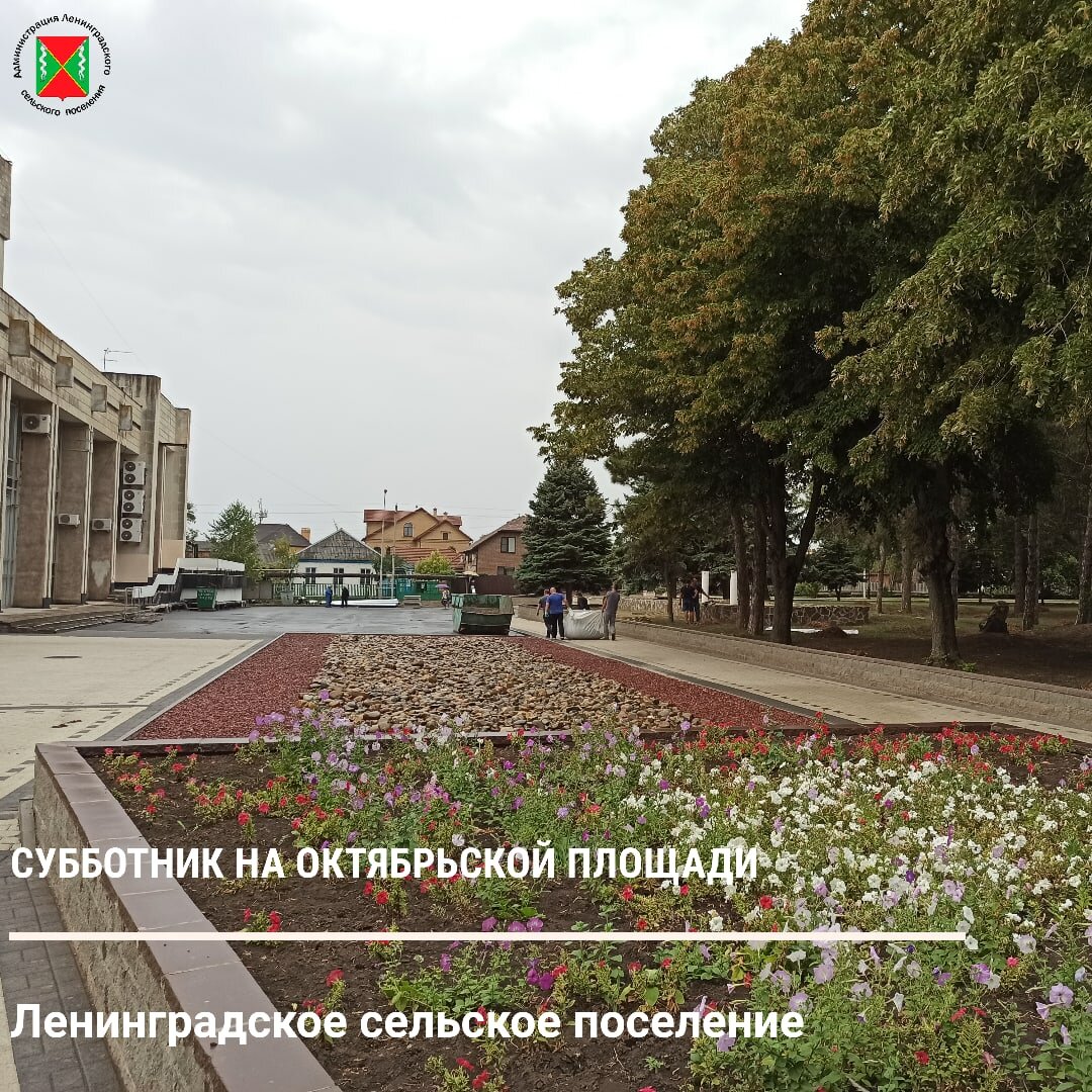 21 августа на территории Октябрьской площади состоялся субботник, в котором приняли участие сотрудники администрации Ленинградского сельского поселения и подведомственные учреждения. В ходе субботника общими усилиями были убраны сухая трава, ветки, листья, опавшие шишки, мусор. Тротуар очистили от порослей травы и подмели. Работы по наведению санитарного порядка будут продолжены и в дальнейшем.