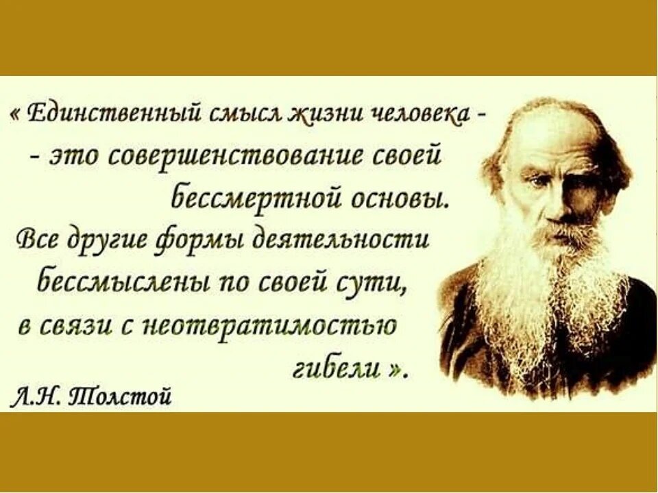 Великий русский писатель, общепризнанный гений мирового литературного наследия - Лев Николаевич Толстой считал главной целью жизни, которая достойна звания Человека и наполняющая основным смыслом его земное существование - это совершенствование своей вечной основы, души (сознания, духа). На первый взгляд это очень правильное и глубокое изречение, великое и логичное по своему содержанию, ведь все течет и все меняется, "все проходит", как было написано на кольце мудрейшего из царей, Соломона, - и лишь сознание вечно, творит реальности, вселенные и проистекает из великой творящей силы, - Любви.. Но, как мне кажется, любая мудрость относительна и может быть рассмотрена с разных ракурсов.. Давайте разберемся, что такое сознание и каковы его свойства.. Человек рождается с чистым, как пустой лист сознанием, развивающимся в течение жизни и заполняющимся разной информацией , чувствами и ощущениями.. Комбинация чувств, информации и ощущений постепенно образует Эго человека, таким образом,
