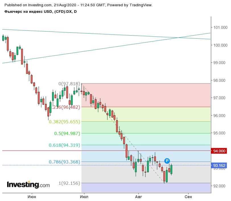 Неделя с 17 по 23 августа 2020 года ознаменовалась некоторым снижением аппетита участников рынка к риску и робкими попытками доллара США восстановиться с низов (от минимума 18 августа 92.114).