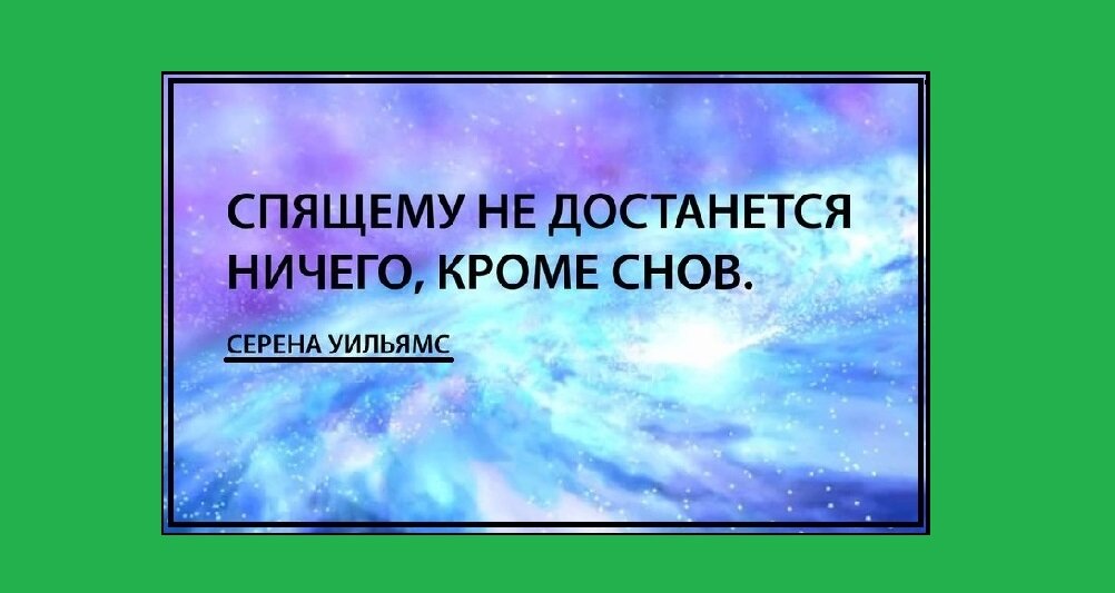 Приветствую, уважаемые читатели! На выходных прочитал цитату Серены Уильямс: "Спящему не достанется ничего, кроме снов", и она меня взбудоражила своим откровением. Ведь всем нам с детства говорили, что"под лежачий камень вода не течёт". Но когда вы задумывались последний раз над такими, казалось бы, обычными вещами?... И вот лежу я на своей удобной кровати, а передо мной мой ноутбук. Я уже успел посмотреть несколько серий своего любимого сериала...Время приближается к обеду. В мыслях я уже предвкушаю, как плотненько и вкусно я пообедаю. Что у меня впереди ещё целый день, чтобы набраться сил перед рабочей неделей. Вот думаю, сейчас ещё почитаю пять минут современные стихи. И представляете? Попадаются стихи в той же тематике сна, действий, результатов, жизни... Стихи с сайта https://stihi.ru/, которые написала Елена Фисун: Кто спит, тот видит только сны.