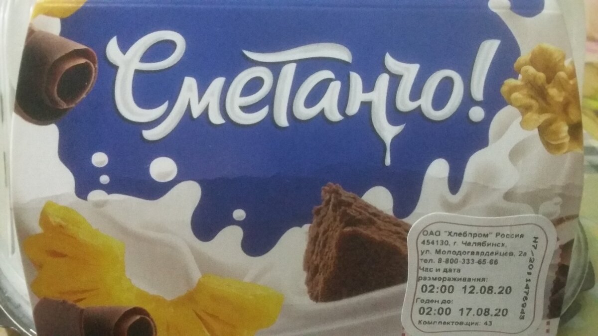 Вчера мои любимые девки со сосредоточенными личиками притащили в дом к чаю вот такой неказистый с виду тортик от популярной на Южном Урале вкусняшной фирмы "МИРЕЛЬ", под подозрительным названием "СМЕТАНЧО!". Впрочем мне лично было совсем по барабану в плоть до самого семейного чаепития.