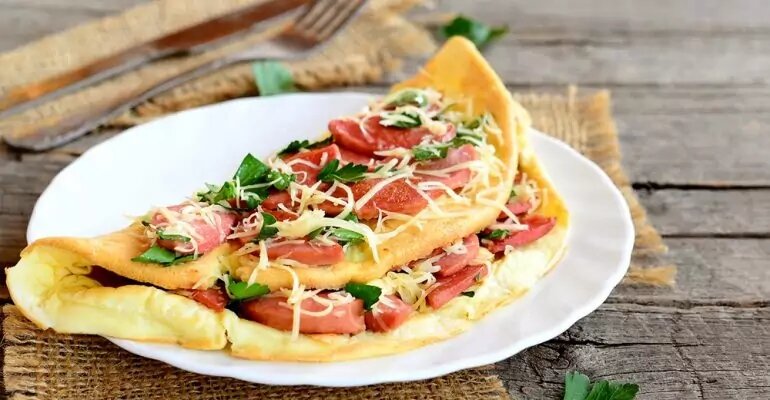 Доступный и легкий завтрак по-французски. Чтобы приготовить это блюдо, мы будем использовать специальный способ приготовления — бризоль (начинка зажаренная в яйцах). Очень вкусно и доступно. В качестве начинки будем использовать сосиску и сыр. По желанию можно добавить свежей зелени. На приготовление этого несложного блюда у вас уйдут считанные минуты. А кушанье получится сытным и вкусным. Необходимые ингредиенты: Приготовление. Готовим начинку: сосиску тонко нарезаем кружочками, сыр натираем на мелкой терке. В отдельную миску разбиваем яйца, добавляем майонез, соль и перец по вкусу и взбиваем при помощи миксера или обычной вилки. На сковороде разогреваем растительное масло и выливаем на нее майонезно-яичную массу и формируем в форме блинчика. На половинку сразу выкладываем сосиски, а сверху сыр. Начинку накрываем второй половинкой яичного блинчика. С каждой стороны обжариваем по 2 минутки. Наше блюдо готово. Приятного аппетита!