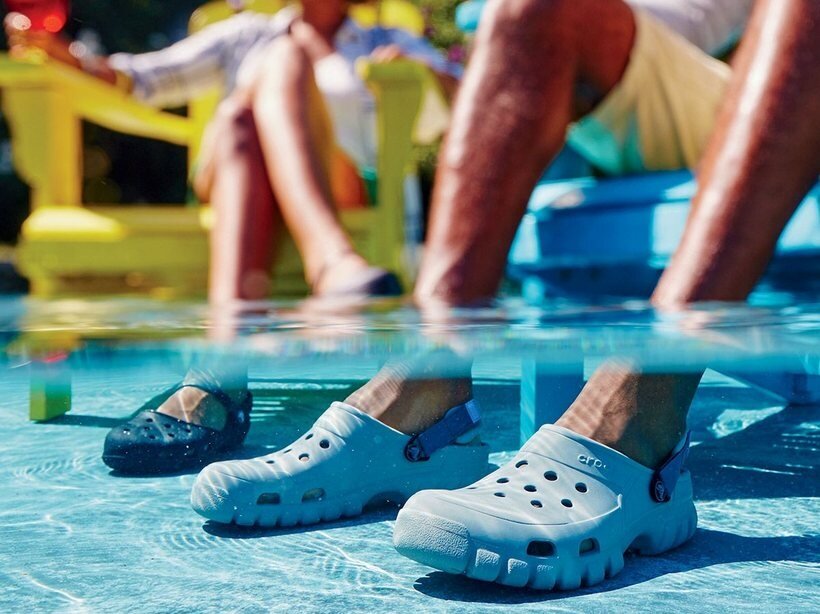 Во время морской прогулки по Карибскому морю Скотт Симанс похвастался приятелям резиновыми водонепроницаемыми галошами, которые не скользили и не оставляли следов на палубе. Обувь была сделана из крослайта, лёгкой вспененной синтетической смолы. Её производила канадская Foam Creations. Все трое были предпринимателями. Бёдекер владел Oregon Food Concepts — крупнейшим франчайзером сети ресторанов быстрого питания Quizno's в западной части США. Хансон занимался продажами и управлением в сфере компьютерного оборудования, ПО и финансовых услуг. Симанс более десяти лет руководил собственной фирмой по разработке и производству фотографического оборудования. В 1999 году друзья основали компанию Western Brands, разделив её поровну. Создатели «кроксов» расчитывали, что смогут продавать 25–30 тысяч пар в год и дело станет «хорошим хобби». Партнёры доработали галоши,добавив ремешок сзади. В 2002 году они зарегистрировали торговую марку Crocs. Первая модель «кроксов» под названием Beach напомин