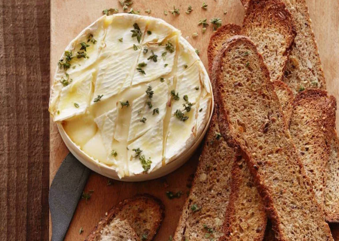 Нужно купить не самый дорогой камамбер, распаковать его, сделать надрезы и поставить на противень.
