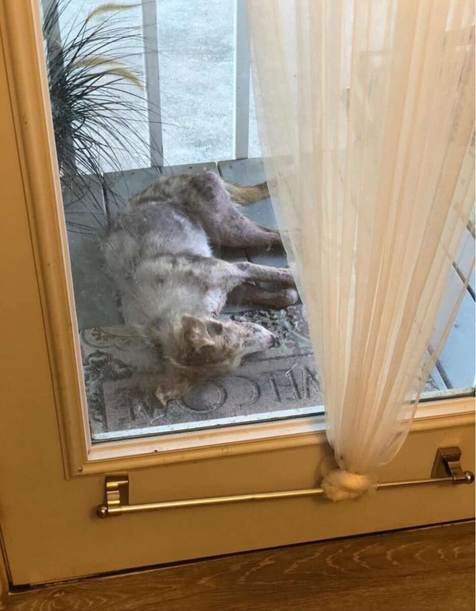 Семья заметила щенка снаружи. Накормив и напоив, решила вызвать спасателей This Is Houston за помощью. Прошли часы, а щенок продолжал дремать на крыльце.