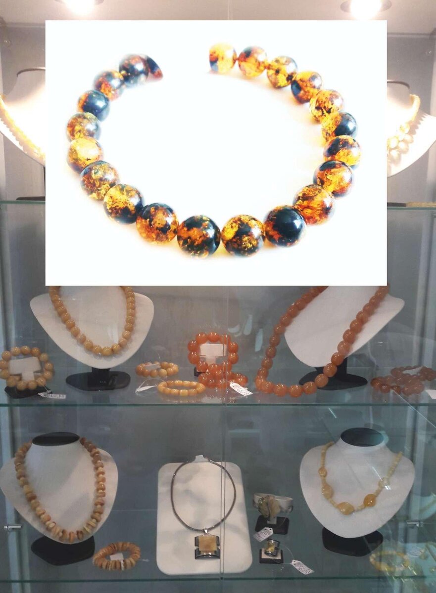Бывает так, что лоток продавца до отказа забит брошами, бусами, статуэтками, серёжками и другими «ходовыми» изделиями из жёлтого камушка, а документа на них нет. Нет бумаги, которая бы подтверждала, что человек торгует янтарём, а не янтареподобной смолой, например. Покупать и верить на слово? А теперь посмотрим на ценники и увидим, что они почти не отличаются от магазинных.