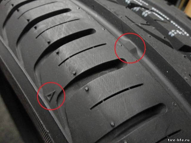 Многие популярные фирмы используют специальные стрелки. Например, компании Bridgestone на наружную сторону покрышки наносит стрелки. Когда стрелки стираются, протектор достигает критической высоты – не более 1,6 мм и подлежит замене.