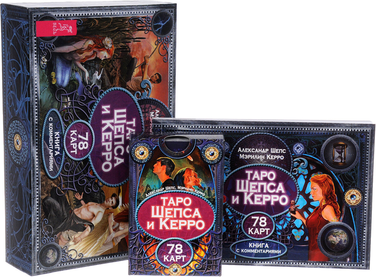 Я часто смотрела битву экстрасенсов с участием Шепса Александра и Мерилин Керро. И была в восторге от их способностей. На данный период времени сама увлекалась магией. Через какое то время узнала, что они делают совместный проект: карты таро. Я сразу сделала предзаказ на читай город. Через какое время наконец то приобрела их. Первым дело распаковал упаковку, проверила подходят мне карты или нет. Как это сделать? Свою ладонь поставить на расстоянии от колоды карт. Если энергия теплая,то они вам подходят,если холодная то увы. Колода подходила мне. Из нее излучала очень чистая, хорошая энергетика. Разложив карты, удивилась на сколько они красочные. У каждой карты своя цифра. Как и в обычных карт таро есть старший и младший аркан. Книга для расшифровки карт удобна в использовании. Раскладов там не много. Я пользовалось только одним. Толкование рассклада идет не на прямую( точная информация),а немного с загадкой. Со временем к этому привыкаешь. Маленький совет: когда мешает карты, оче