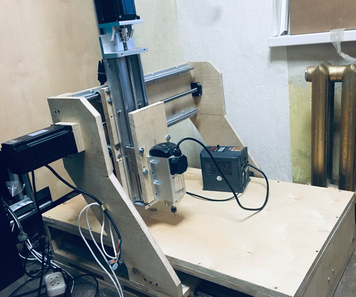 Пока я этим занимался, прошёл месяц или даже два, а значит у меня снова появились излишки от зарплаты. Покупаю из поднебесной шпиндель 1.5кв с инвертором и тестирую его на маленьком станке (обкатываю). Попутно занимаюсь механикой большого станка.