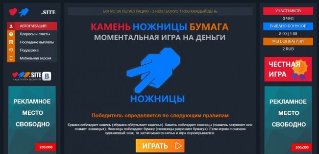 Скрипт популярной игры КАМЕНЬ НОЖНИЦЫ БУМАГА НА ДЕНЬГИ