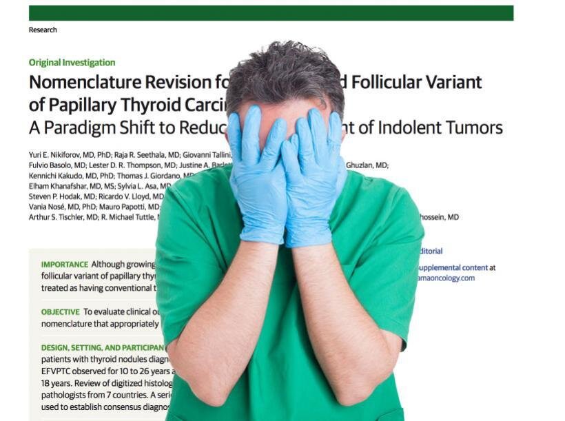 Речь идет об инкапсулированном фолликулярном варианте папиллярной карциномы щитовидной железы, известной как EFVPTC, и, хотя давно считается, что она обладает крайне низким риском, ее, как правило, лечат как обычный рак щитовидной железы, в основном из-за слова рак.
