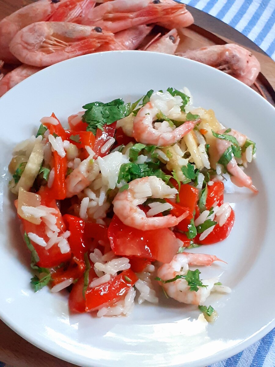2. Креветки отварите в кипящей подсоленной воде (3-4 минуты), охладите и очистите от панциря.