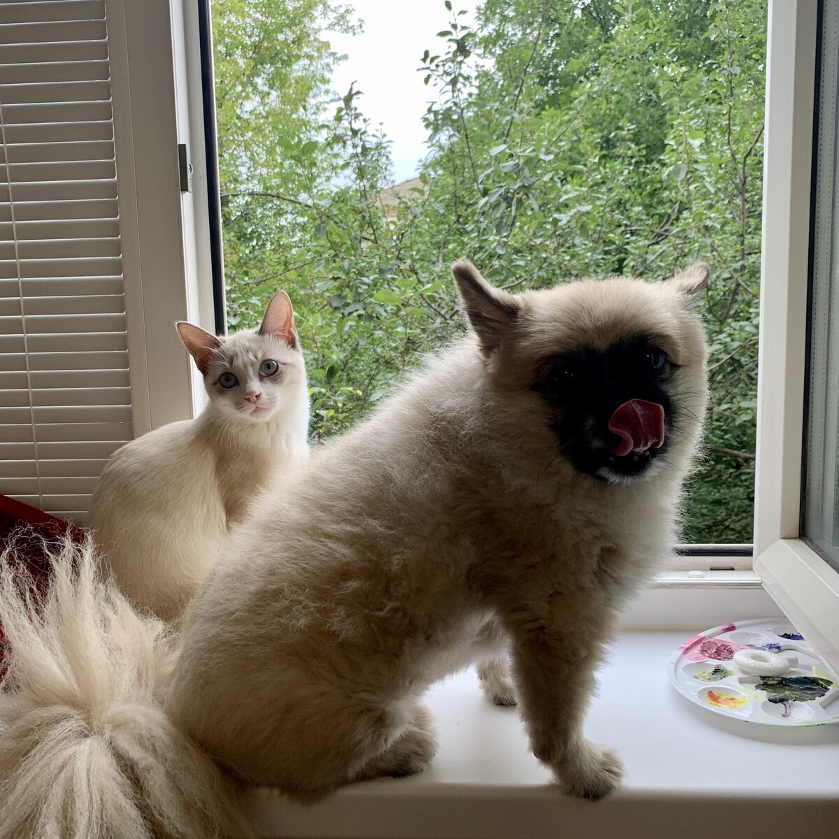 И снова эти два пушистика Котейчик - Альфи и пёсик - Оскар. Так их зовут и росли они не вместе, вообще они даже живут не вместе, но как они дружат это поразительно. Оскар это пёс моей мамы и иногда они приезжают к нам в гости, Оск даже остаётся с ночёвкой на несколько дней и эти дни точно не проходят в грусти))) Я очень рада, что мы решили познакомить этих животных, потому что Альфи очень умный кот и принял многие собачьи привычки на себя 😄 к примеру он приносит нам игрушку, а мы ее снова кидаем и он снова ее приносит, представляете, душа пса в котейке 👍