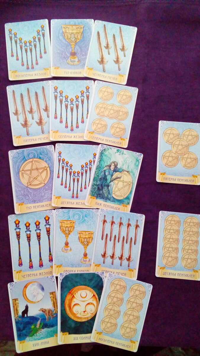 Добрый день дорогие друзья! Сегодня предлагаю сделать расклад и установить сроки 2-3 месяца, т.е. встречу ли я человека который мне по судьбе ближайшие 2-3 месяца. Итак... Однозначно произойдет встреча, при чем карты говорят о том, что пора бы вам двигаться в этом направлении, т.е. не сидим дома и не ждём когда принц постучит к нам в дверь, а выходим на улицу, общаемся, встречаемся с друзьями, гуляем... Вполне возможно что у многих в прошлом был печальный опыт, очень тяжело выходили из отношений, а кто-то до сих пор переживает. И по картам видно (восьмерка Жезлов), что встреча произойдет когда вы еще будете в печали, будете прокручивать всю прошлую ситуацию в голове, виня себя в каких-то моментах. Встреча будет однозначно по Тузу Кубков, при чем это не просто мимолетный роман, а очень многообещающий, долгий, который приведет вас к созданию семьи с этим человеком. Познакомитесь в тот момент, когда вы либо будете не в очень хорошем расположении духа, либо произойдет какая-то ссора, будет