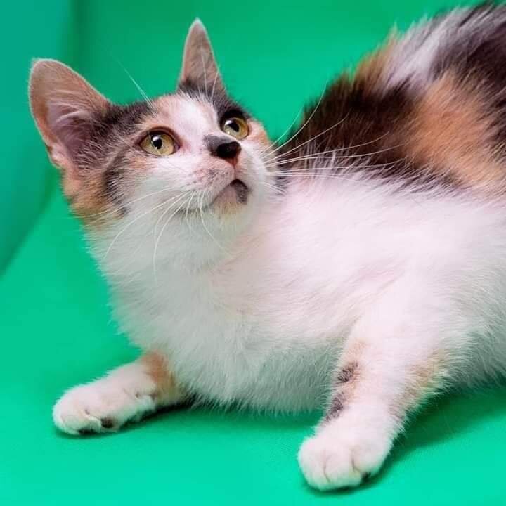 Кошечка Сима. Совсем молоденькая, ей около 2х лет. Она была домашней, это видно по её поведению. Сима-роскошная девочка: у неё необычный трехцветный окрас, а какие выразительные янтарные глаза. Сима- нежнейшая кошка, тёплая, ласковая, ручная, с ней так уютно. Здорова, стерильна, привита. Лоточек знает прекрасно. Кушает сухой и влажный корма. Отдаётся в квартиру с сетками на окнах.