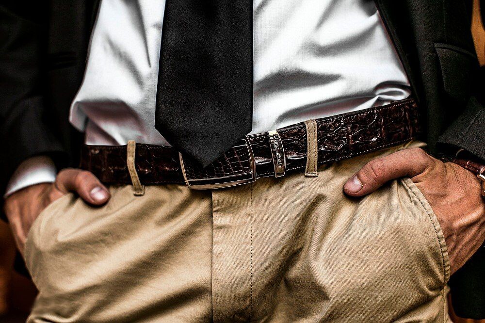 Ремень является обязательным элементом мужского гардероба. Даже если брюки сидят идеально и ремень не выполняет функции поддержки, все равно его рекомендуется надеть – это правило хорошего тона. Цвет ремня должен сочетаться с тоном костюма или брюк. По фактуре ремень сочетается с обувью, ремешком от часов и портфелем. В деловом стиле неуместны яркие или массивные пряжки и декоративные элементы. Деловой ремень гладкий, не широкий, желательно матовый. На пряжке недопустимы принты или фирменные логотипы. Ремень не должен охватывать талию дважды, не стоит также затягивать ремень туго на животе. Не полагается сочетать ремень и подтяжки, надевают что-то одно. С деловым костюмом предпочтительно сочетать подтяжки из ткани или тонкой кожи, которые закрепляются с помощью петель и пуговиц, но не зажимы-«крокодилы». Несмотря на то что подтяжки с резиновой лентой встречаются чаще всего, они не сочетаются с деловым стилем, так же как широкие и яркие модели.