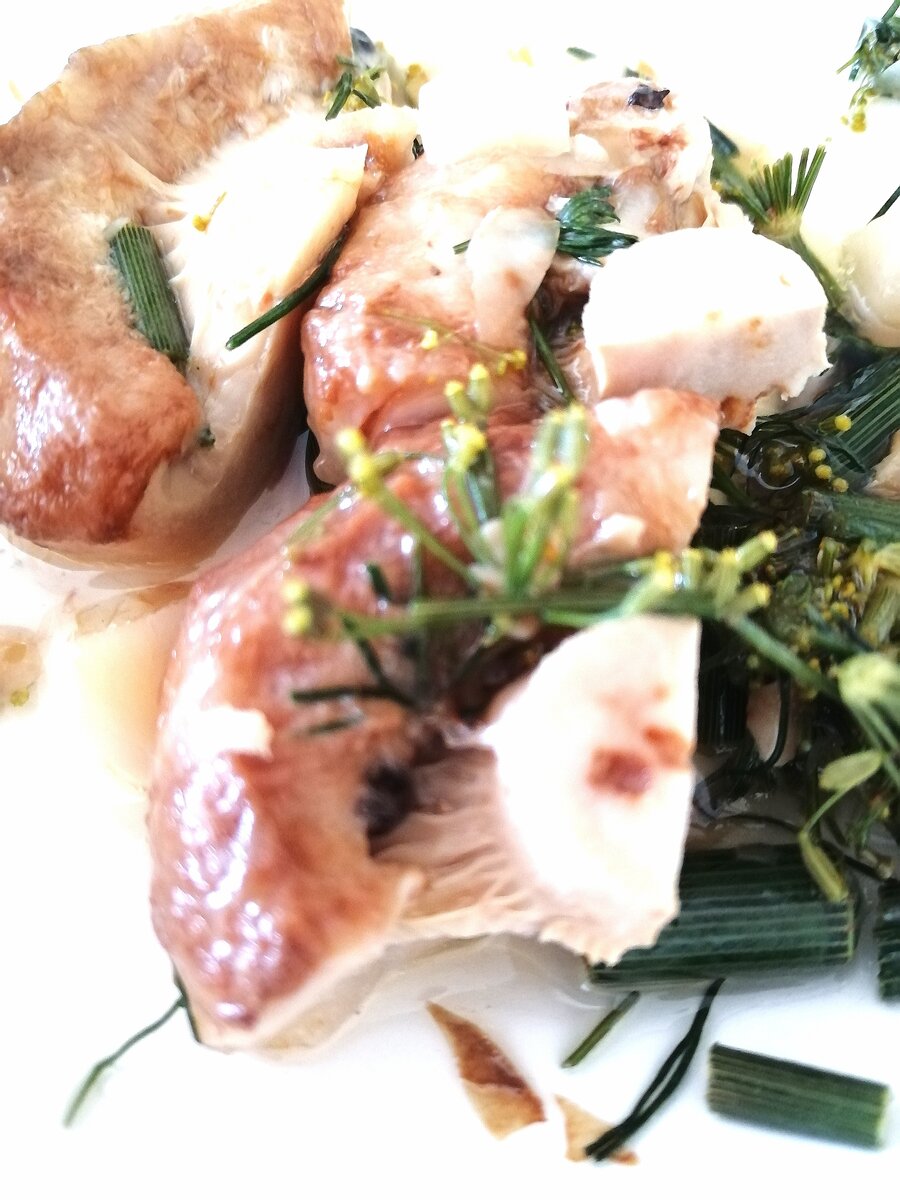 Перед подачей нужно грибы промыть, полить подсолнечным маслом и добавить рубленный чеснок.