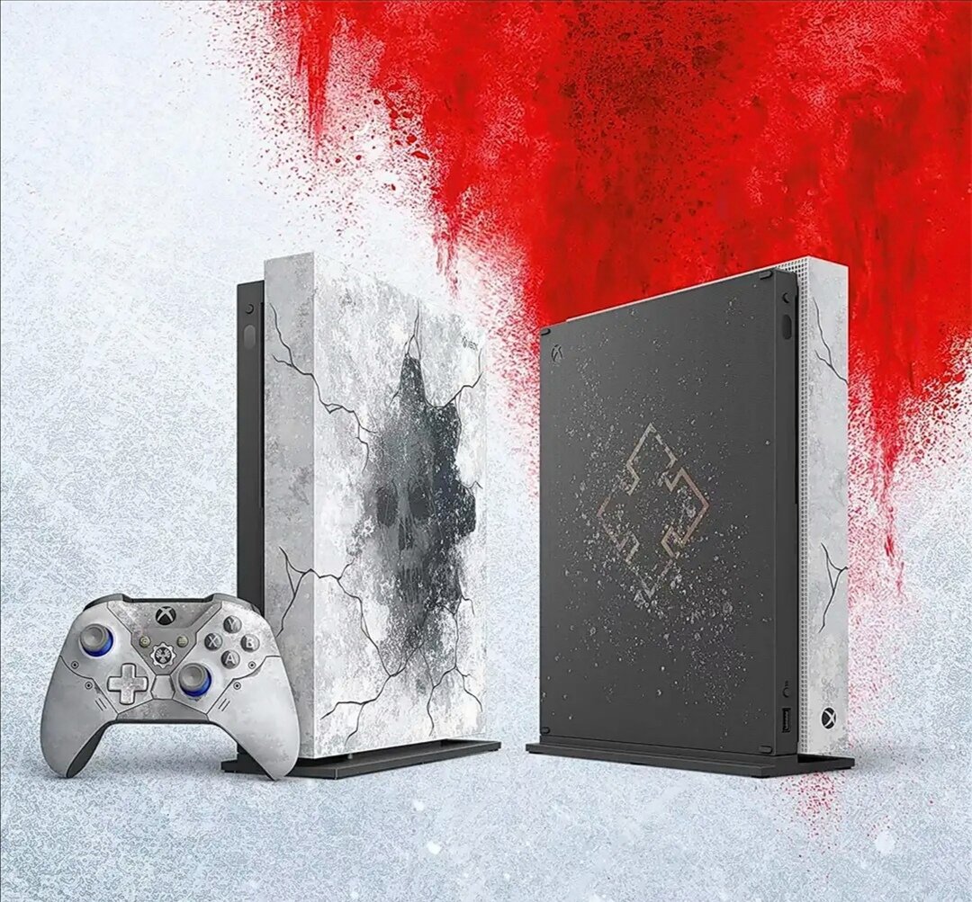 Первой на очереди идёт дорогая и очень красивая, золотая версия xbox one, она покрыта тонким слоем 24 каратного золота, эта версия xbox one стоит 600 евро, цена конечно впечатляет, но каждый богатый любитель xbox однозначно должен стать обладателем этой шикарной консоли. Дальше идёт отличная консоль xbox one x gears of war 5 limited edition, консоль выполнена в интересном дизайне потресканный вид консоли впечатляет, при включении консоли идёт отличный звук от класического, в комплекте с консолью идёт шикарный геймпад, некоторы части геймпада прорезинены, геймпад приятен глазу, сочетания цветов на геймпаде хороши, синий и серый выглядят гармонично, сам дизайн геймпада похож на дизайн консоли, некоторые вырезы на геймпаде чувствуются на ощупь. Следующая лимитированная версия консоли xbox one x Cyberpunk 2077, консоль выглядит очень интересно, как я понимаю, дизайн консоли это чип или плата, но если не вдаваться в подробности, то цвета консоли выглядят очень классно, этот xbox выглядит