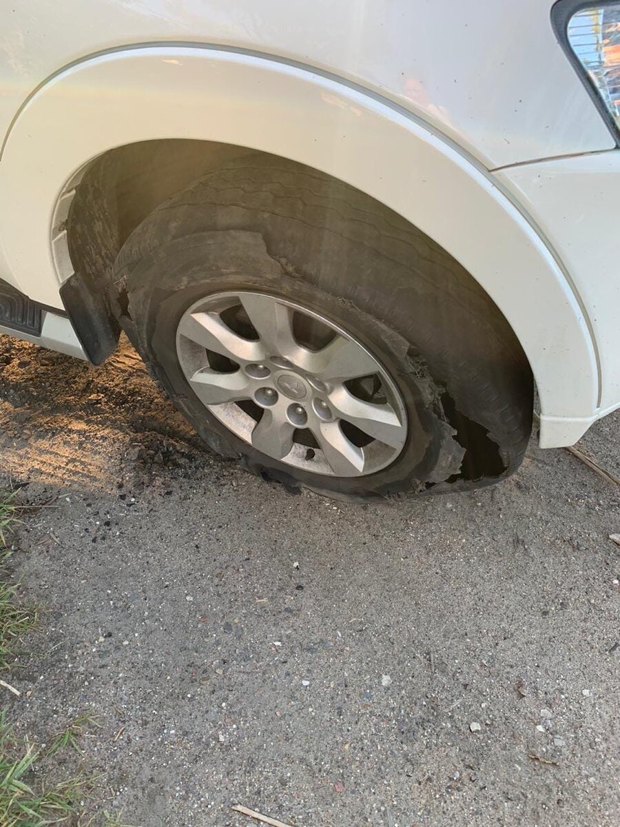 Всем привет автолюбители, сегодня расскажу что надо делать если у вас лопнуло колесо в дороге, самый простой способ. Начнем с предистории. Ехал я по трассе 80 км/ч, далее хлопок и машину ведет в сторону, еле справившись с управлением, съехал на обочину и увидел это. Даже не представляю как это могло произойти, так как резина относительно новая, второй сезон только. Вся сложность заключалась в том, что у меня не было ни домкрата, ни инструмента, бензина в баке оставалось совсем ничего, а телефон был разряжен. Около часа я потратил на попытки остановить кого нибудь и попросить помощи, но никто не останавливался. Приняв решение бросить машину и идти до ближайшего населенного пункта или хотя бы заправку, я выставил знаки аварийной остановки и пошел. Я шел минут 20, уже смеркалось и добрался до какой-то не сетевой заправки, объяснив ситуацию, мне дали зарядить телефон, предоставили канистру бензина, инструмент для монтажа колес и подбросили до моей машины. (конечно же я финансово отблаго