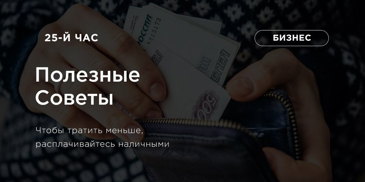 Чтобы тратить меньше, расплачивайтесь наличными Оказывается, способ оплаты влияет на то, сколько мы тратим денег. Учёные обнаружили, что при использовании наличных люди склонны относиться к затратам более разумно. Последнее исследование, проведённое при поддержке Агентства по финансовой защите потребителей (Consumer Financial Protection Bureau), показало, что при оплате наличными мы склонны тратить меньше денег. В исследовании. приняли участие 14 тысяч пользователей кредитных карт, у которых уже были задолженности. Ранее учёные обнаружили, что те вещи, которые мы купили с помощью наличных, обычно представляют для нас большую ценность. Так мы лучше ощущаем сам факт покупки. Поэтому, если вы считаете, что тратите слишком много денег, вы можете извлечь из вышесказанного полезный вывод. Постарайтесь реже оплачивать покупки кредиткой. Оплата наличными позволяет лучше отслеживать, куда уходят деньги, и, соответственно, тратить их более разумно.