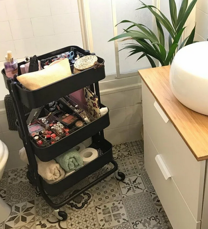 За счёт своей мобильности и имея эстетический вид, тележка прекрасно впишется в интерьер ванной, куда можно разместить предметы первой необходимости и не только.