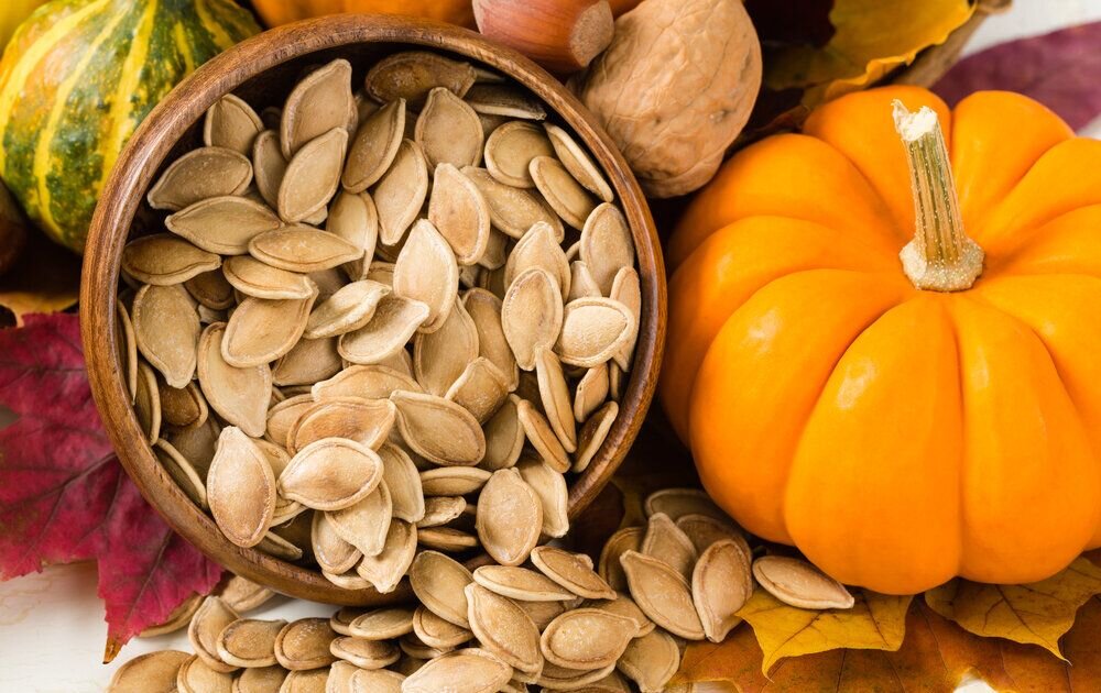 Чем полезны тыквенные семечки для организма? Это просто кладезь полезных свойств! Немного предыстории. Семена тыквы впервые были обнаружены археологами в пещерах Мексики, которые датируются 7000 годом до н.э. Тыква и семена тыквы были важной составляющей питания американских индейцев, использовались ими и как диетический продукт, и как лечебный. Особая ценность семечек тыквы в том, что с временем они только улучшают свою пищевую ценность, в то время как большинство продуктов по мере хранения теряют свои полезные свойства. По данным ученых Массачусетса, семена кабачков и тыквы за пять месяцев хранения показывают заметное увеличение содержания белка. Польза для здоровья! Тыквенные семечки содержат большое количество минералов, включая фосфор, магний, марганец, железо и медь. Являются источником витамина К. В них также имеются: По данным исследований, семена тыквы препятствуют камнеобразования в почках, за счет содержания оксалата кальция. Тыквенные семечки уменьшают воспаление при артри