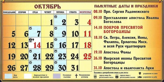 Главное событие октября для православных верующих — праздник Покрова Пресвятой Владычицы и Богородицы Приснодевы Марии — 14 октября (среда).
