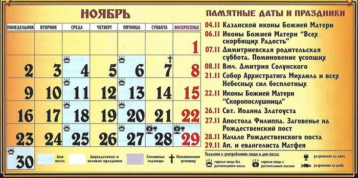 Православный календарь. Церковные праздники в ноябре 2020 года