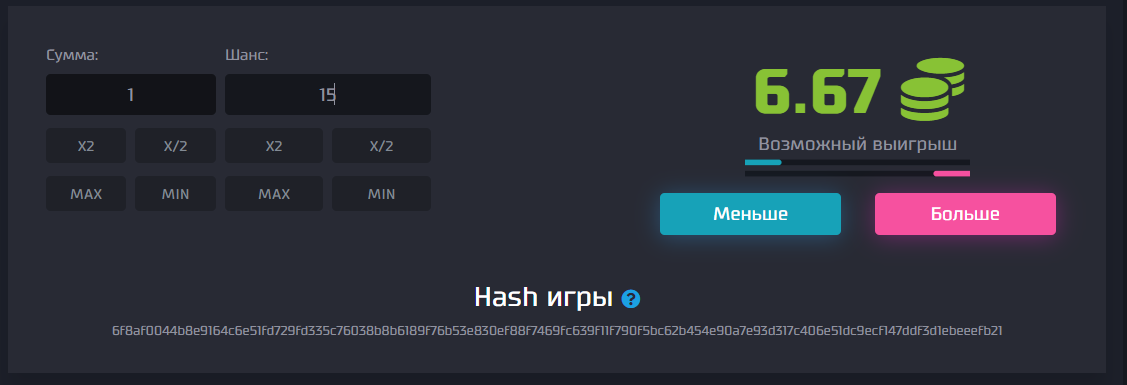 Сам сайт : https://disbet.top/ref/122559 Тактика в одном из 7 режимов. Dice: При депозите в 100 рублей, выставляем шанс 15% и нажимаем на меньше 6 раз, если из 6 раз не залетает не 1 игры, то ставим уже 5 рублей все так же 6 раз, и дальше идем на умножение после каждых 6 раз, умножаем на 5 сумму ставки. Всем желаю удачи