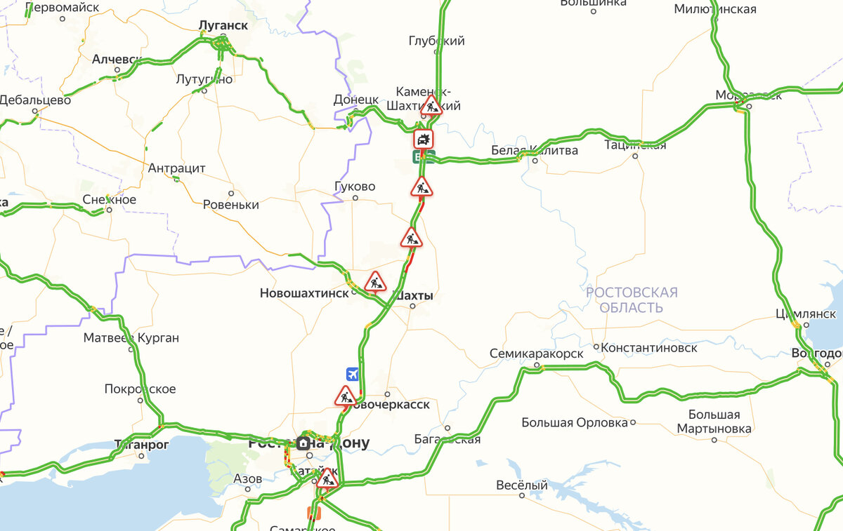 Водителям, едущим со стороны донской столицы в сторону Воронежа, придётся столкнуться с пробкой в Красносулинском районе: от 980-го километра трассы М-4 «Дон» до 988-го километра. По информации очевидцев, машины и автобусы в этом заторе проводят не меньше часа.