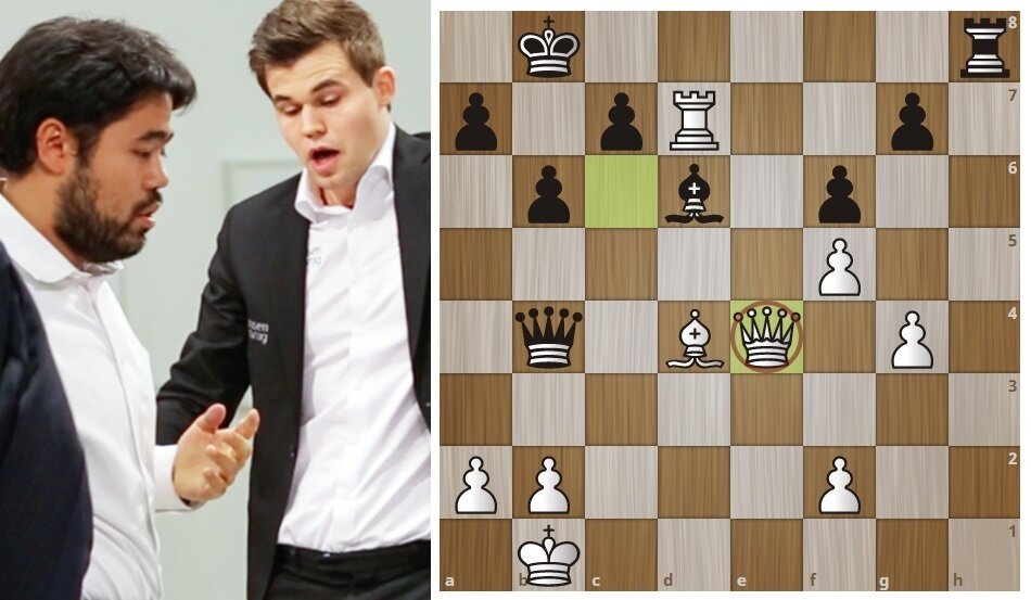 Вчера 16.08.2020 известный американский гроссмейстер Хикару Накамура, играя белыми фигурами против Магнуса Карлсена, допустил невероятную по своей простоте ошибку на тему "Двойной удар". Такие просчеты обычно свойственны новичкам, но в этот раз маху дал гроссмейстер! В позиции на диаграмме ход черных! Попробуйте найти самостоятельно решение,а затем проверьте правильность решения просмотрев видео обзор партии: