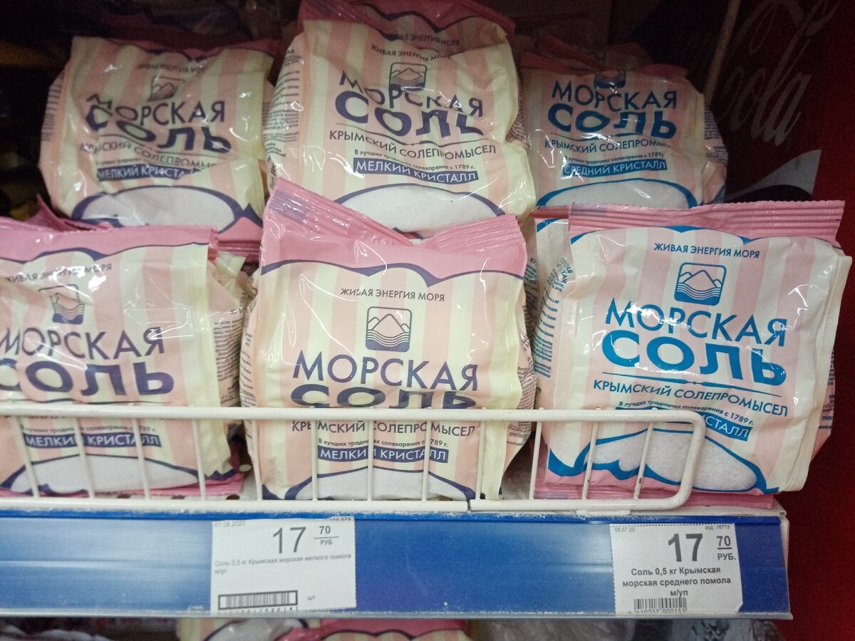 Да, вы можете возразить, что морская соль продается в любом магазине. Ну вот в нашем городе крымской нет нигде. Поэтому эт пачки полетят со мной домой.
