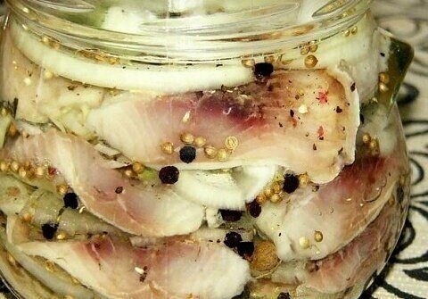 Ингредиенты: -сельдь – 2 шт., -лук – 1-2 большого размера, -уксус яблочный – 5 ст.л., -соль – 2 ч.л., -сахар – 0,5 ч.л., -вода – 1 стакан, -перец горошком – 10 шт., -щепотка зерен кориандра. Приготовление: сначала готовим маринад – добавляем в воду сахар, соль, яблочный уксус и немного нагреваем (не кипятим) до растворения в нем ингредиентов. Пока маринад остывает, чистим селедку и режем на кусочки, также режем кольцами лук. Берем банку и укладываем в нее селедку, добавляя вперемежку по мере укладки лук, перец горошком и кориандр. Заливаем это уже остывшим маринадом, накрываем крышкой и ставим на сутки куда-нибудь подальше. Через сутки вкусная маринованная селедка будет готова.