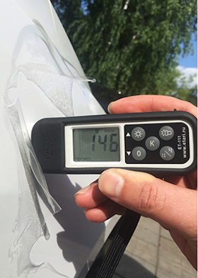 Измеряет толщину лакокрасочного покрытия автомобиля.
