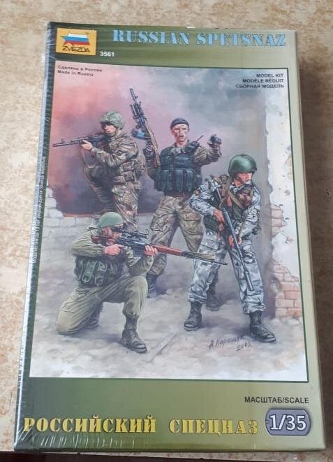 Набор сборных фигурок группы солдатов российского спецназа. Масштаб 1:35. Размер каждой фигурки примерно 5 см. В комплекте: отливки с 29 деталями сборных фигурок и инструкция по сборке. Спасибо, за просмотр! Миниатюру "Советские санитары" можно посмотреть здесь.