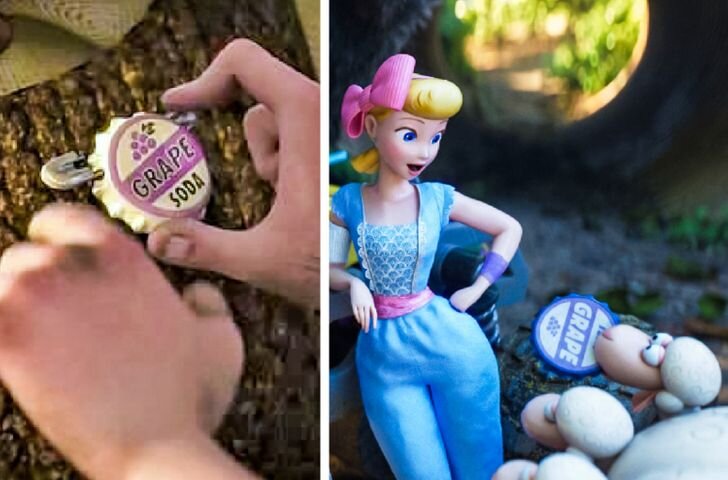 В одной из сцен "Истории игрушек 4" мы можем увидеть, как овцы Бо Пип приносят ей крышку от лимонада. Точно такую же крышку мистер Фредриксен из мультфильма "Вверх"использовал в качестве значка, чтобы наградить Рассела.