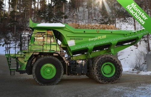 Швейцарская компания E-Mining из Хаймберга, работая совместно с компанией Empa, Бернским университетом и компанией NTB Interstaatlicke Hochschule fur Technik Buchs, взяла старый карьерный самосвал и оборудовала его полностью электрической трансмиссией, получив, таким образом, самый большой в мире электрический автомобиль. Более того, на этом автомобиле, который получил название E-Dumper, установлена самая большая аккумуляторная батарея из когда-либо установленных на электромобилях. Но самым интересным является то, что при правильных условиях эксплуатации, электрический самосвал E-Dumper вырабатывает такое количество энергии, которого практически хватает на удовлетворение его собственных потребностей.