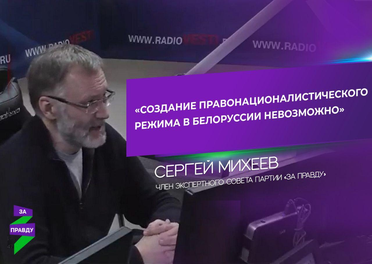В среду, 12 августа, член Экспертного совета Партии «ЗА ПРАВДУ» Сергей Михеев в эфире авторской программы «Железная логика» на Вести FM представил анализ происходящих событий в Республике Беларусь. «В России люди с симпатией относятся к Белоруссии именно потому, что там отчасти сохранена социально ориентированная государственная модель. Участие государства, социальные гарантии, невысокий уровень потребления, гарантии по рабочим местам… А последние годы у нас в России идет возрождение всего, что связано с Советским Союзом. Обратно в социализм, у партий социально ориентированные лозунги, и часто в пример ставят Белоруссию. А там трещит по швам та модель, которую тут ставили в пример. Это парадоксально, и это следует изучить. Наша молодежь и часть оппозиционеров сочувствуют той оппозиции, которая сейчас есть в Белоруссии. Но в реальности по убеждениям это совершенно разные люди. Мне так кажется, что некие внешние силы пытаются запустить их по одному коридору, в данном случае, это разрушен