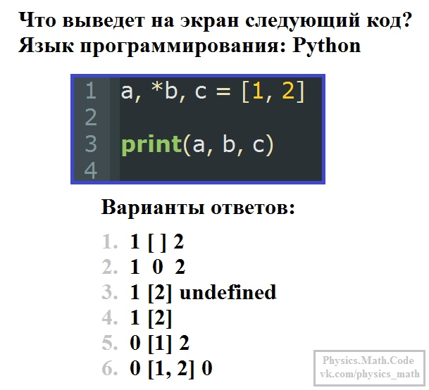 Итак, собственно, сама задача. Нужно определить, что выведет в консоль код, написанный выше. Для облегчения решения даны несколько вариантов ответа.