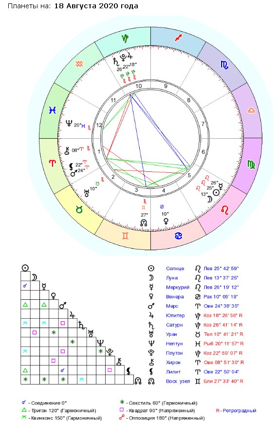 Восходящий узел в Близнецах получает сразу три положительных секстиля с ближайшими к нам небесными телами. Их влияние не так, чтобы очень сильно, или определённо, но в совокупности оно может оказать серьёзное воздействие на узел будущего. Луна приближается к соединению Солнца и Меркурия. Вскоре она добавит туда свою энергетику и 19 августа нас ждёт очень интересное и необычное полнолуние. Так как же эти аспекты скажутся на знаках?