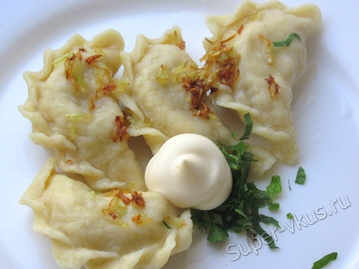 Состав: Способ приготовления: Для начала делаем тесто для вареников. В миску насыпаем муку. В центре делаем углубление и разбиваем туда яйцо. Добавляем соль, немного воды и начинаем замешивать тесто. Оно должно получится тугим и эластичным.