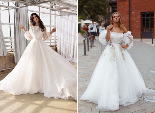 Одно из самых популярных платьев, которое, без сомнений, можно назвать платьем принцессы. Сейчас пышные массивные фасоны становятся пережитком прошлого, но всё же, они нашли своё продолжение и лёгких, воздушных моделях. Они могут включать в себя спущенные плечи, бретельки. Могут быть разных оттенков. Особенно стильно в воздушном платье будут смотреться рукава-фонарики, которые сбалансирую верх и низ. Такое платье придаст образу лёгкость и женственность.