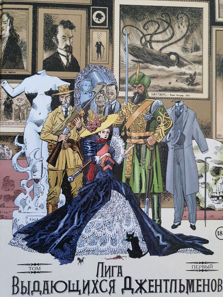 Сюжет: Алан Мур Художник: Кевин О'Нилл Статья про Алана Мура - Здесь Тяжела и неказиста жизнь российского читателя комиксов. Большинство качественных работ не доходят до нашего брата, а великие произведения выходят с опозданием лет на дцать(см. Трансметрополитен). Участь Лиги на русском рынке незавидна. Потенциальный покупатель отравлен серым фильмом по Лиге, а неофита может отпугнуть эпоха и антураж произведения. Но Лига выдающихся джентельменов это произведение заслуживающее внимания. Сюжет. Лондон, 1898 год. Эпоха королевы Виктории близится к концу, надвигается XX век. Это время великих перемен и эпоха застоя, период строгого порядка и низменного хаоса. Это эпоха, нуждающаяся в защитниках! Аллан Квотермейн, капитан Немо, Хоули Гриффин, доктор Генри Джекилл, мистер Эдвард Хайд и Мина Мюррей - эти защитники, и вместе они являются Лигой Выдающихся Джентльменов. Имеются слухи о том, что серия появилась, как ответ Мура и О"Нилла на пустеющие карманы. Даже если такая ситуация имела м