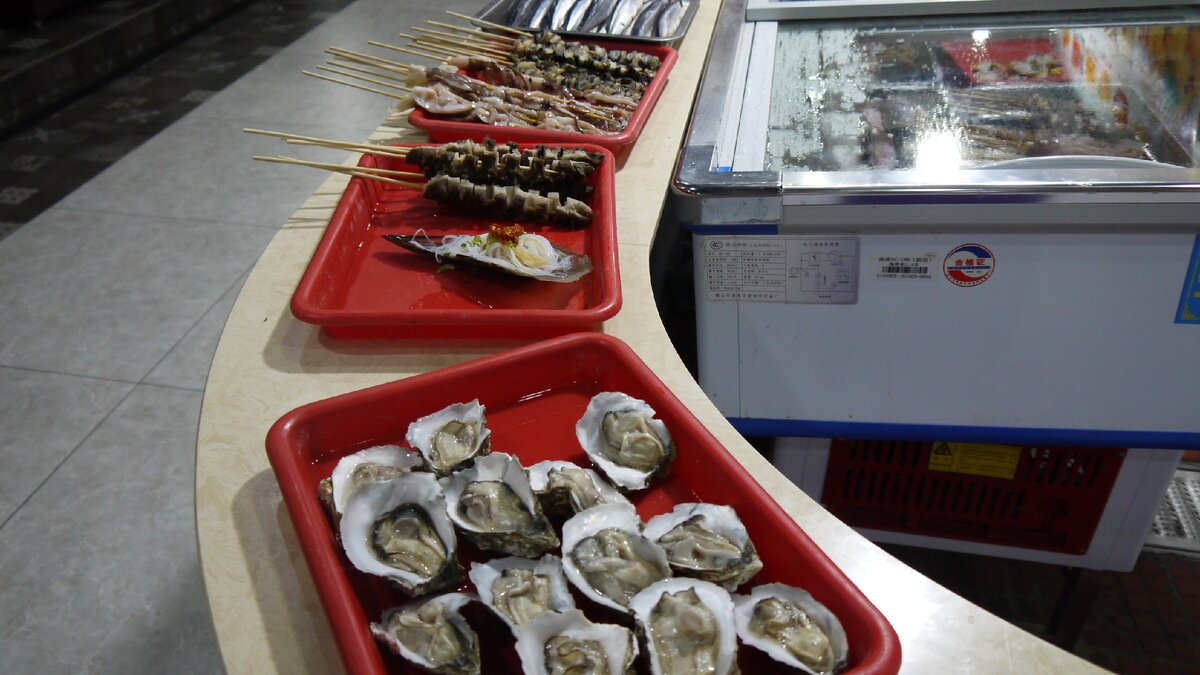 Только устрицы по 40руб/штука. А тут…впрочем, смотрите сами. Цена указана за 1 поднос-ассорти, юань стоит около 10 рублей.