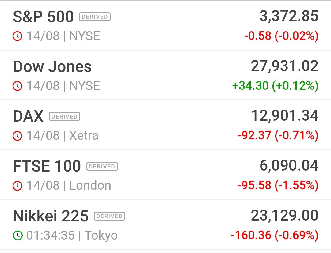 ️ Индексы: Промышленный индекс Dow Jones вырос на 0,12%, в то время как S&P 500 упал на 0,02%, а NASDAQ Composite упал на 0,36%.