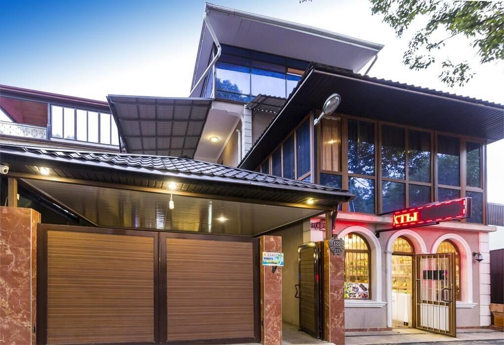 Гостевой дом "Гагра-Лазурная" расположен в одном из курортных городов Абхазии, в Гагре. Отель находится в 250 метрах от побережья Черного моря. Располагает одним четырехэтажным зданием с 20 номерами. Построено здание в 2012 году. Бюджетный отель имеет жилье с удобствами и без ванной комнаты в номере. В номерах с удобствами есть отдельная ванная комната, система кондиционирования, телевизор и холодильник. В эконом варианте ванная комната с душем на этаже, пользоваться можно гостям из двух номеров. В наличии двухместные номера, четырехместные и пятиместные. Все гости могут пользоваться гладильными принадлежностями, которые расположены на этаже. В общественных местах отеля есть wi-fi соединение. Работает экскурсионное бюро, в котором можно заказать экскурсии по достопримечательностям района. Продуманы места для отдыха и принятия пищи. На первом этаже здания магазин с товарами первой необходимости. 5 ночей в двухместном номере стоимость 18000 рублей.