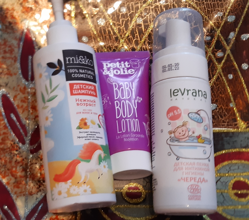Доброго времени суток! Рада приветствовать Вас на своем канале! Кожа малыша имеет свои особенности, она очень нежная и склонна к раздражениям, сухости, а иногда и аллергическим реакциям, поэтому требует особого внимания. Для того чтобы избежать проблем и воспалительных процессов необходимо тщательно за ней ухаживать. Сегодня мне хотелось бы рассказать о базовых средствах для ухода за кожей детей, которые можно применять с рождения (моей дочке 4 года и мы до сих используем их). Итак, начнем. 1. Шампунь для тела и волос детский Ми&Ко “Нежный возраст” ◀◁◀ Описание ▶▷▶ ❤Цена: 650 рублей; ❤Где купить: эко-лавки вашего города или официальный сайт производителя; ❤Объём: 250 мл. Состав у средства очень хороший, шампунь богат на экстракты растений и масла. Проверку на натуральность средство также прошло на отлично. Шампунь в меру густой, хорошо распределяется по волосам. Пенообразование среднее. Опять же, смотря с чем сравнивать. Тут нет ПАВов, и сравнение с маленькой феей было бы не тактич